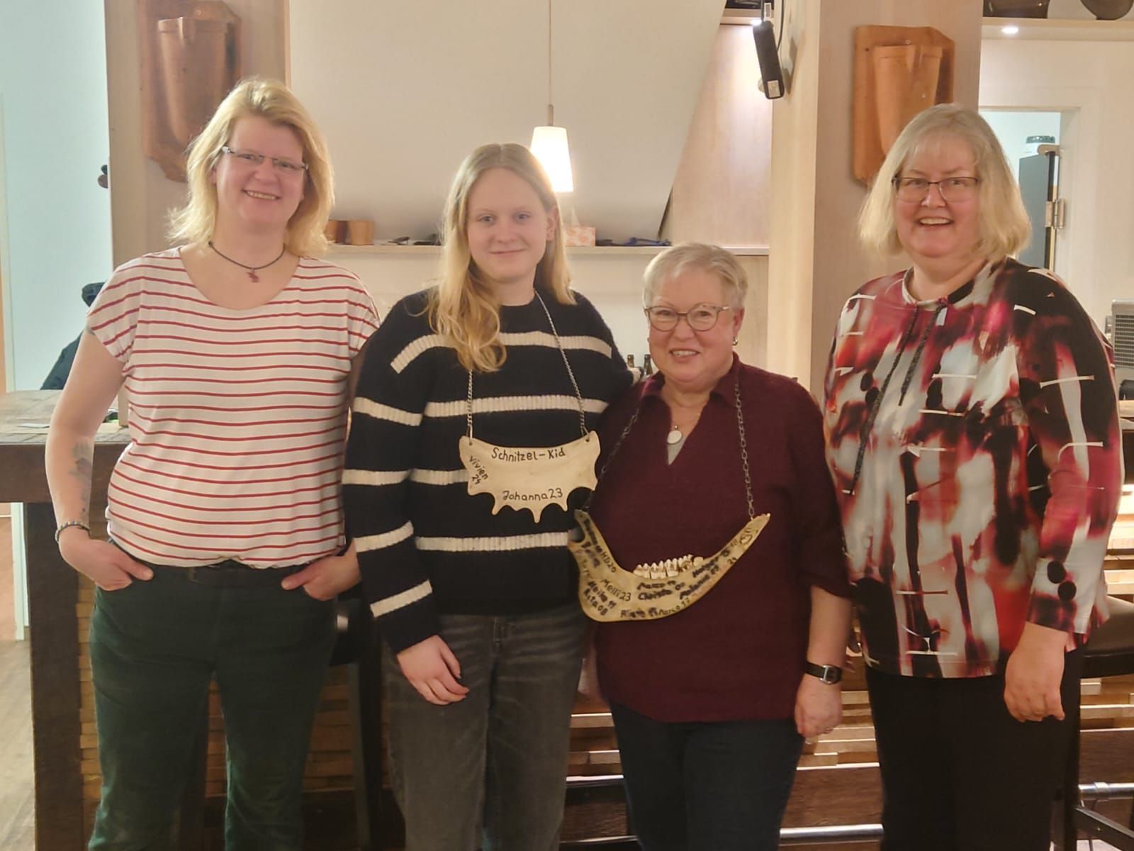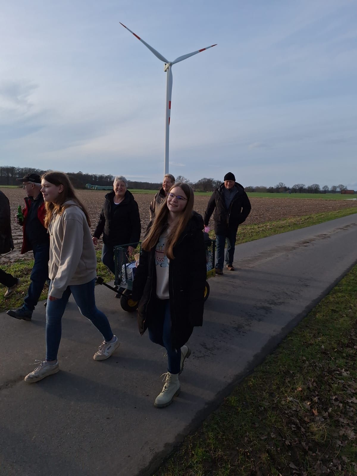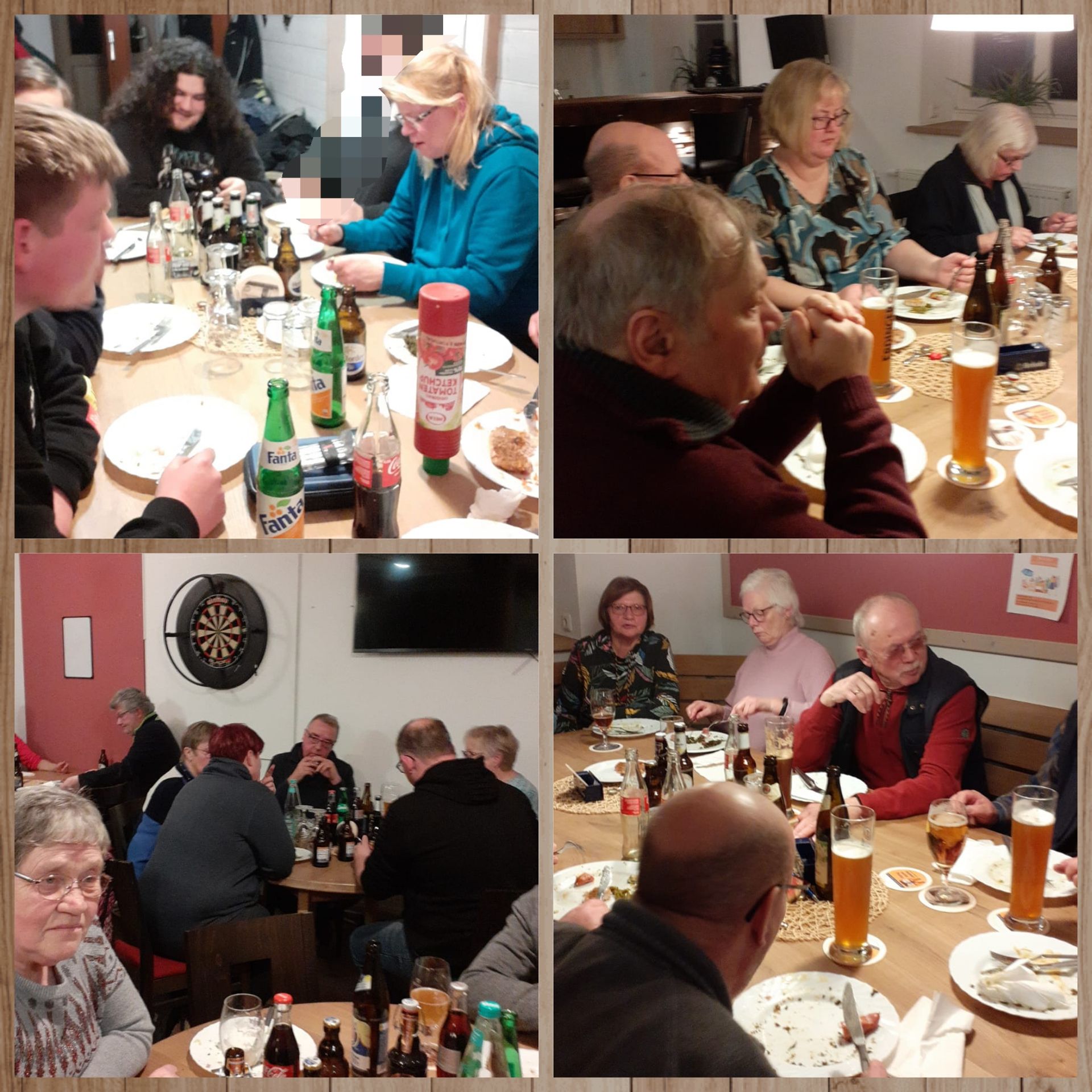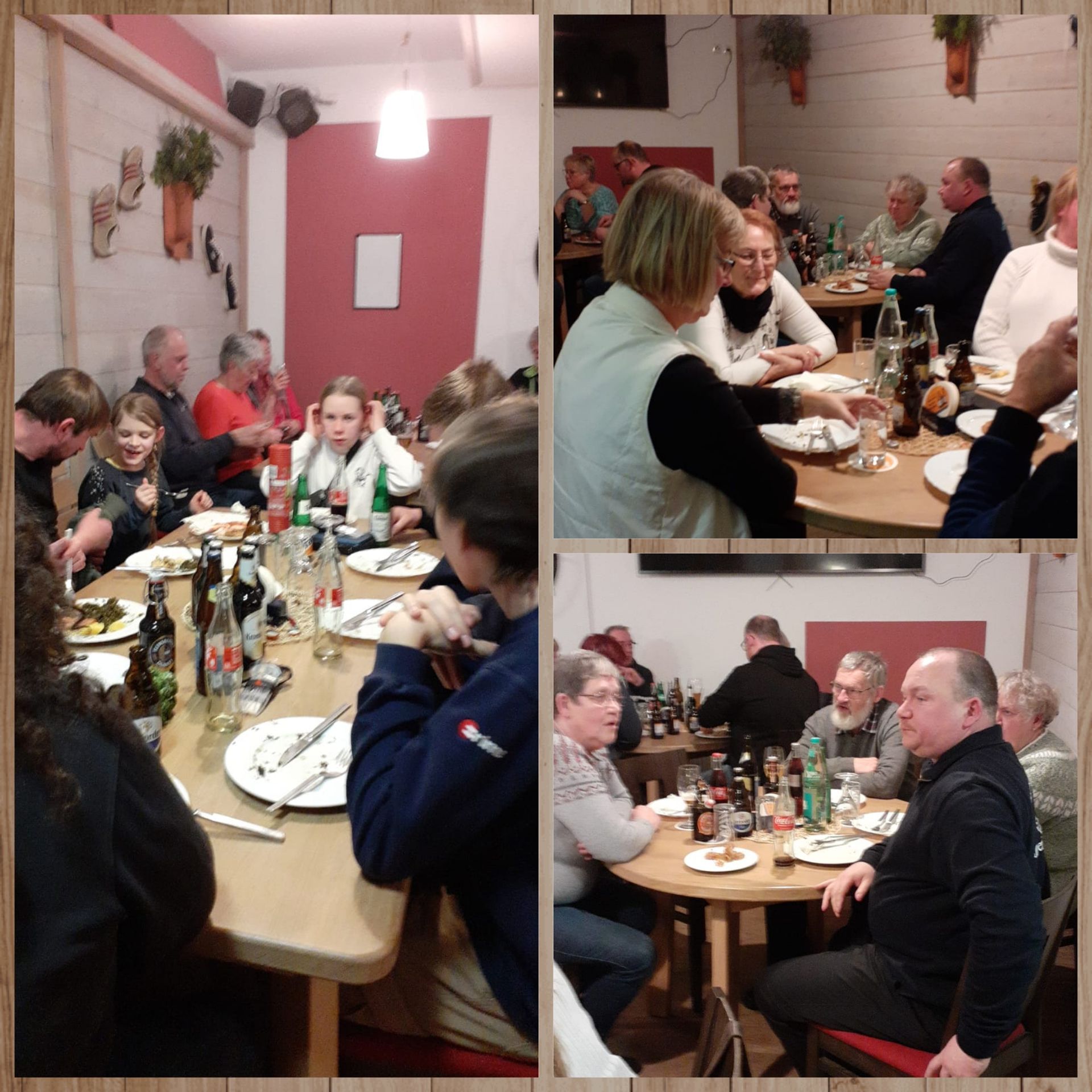 Beim Ziel am DGH verdoppelte sich die Teilnehmerzahl nochmal, sodass in großer, gemütlicher Runde gegessen wurde. Zur Wahl standen (natürlich) Grünkohl oder ein Schnitzelgericht, beides wurde gut angenommen. Zur Kohlkönigin wurde Melanie Prinzhorn gekürt und die Kinder bzw. Jugendlichen wählten ein "Schnitzelkid" aus: Johanna von der Behrens.