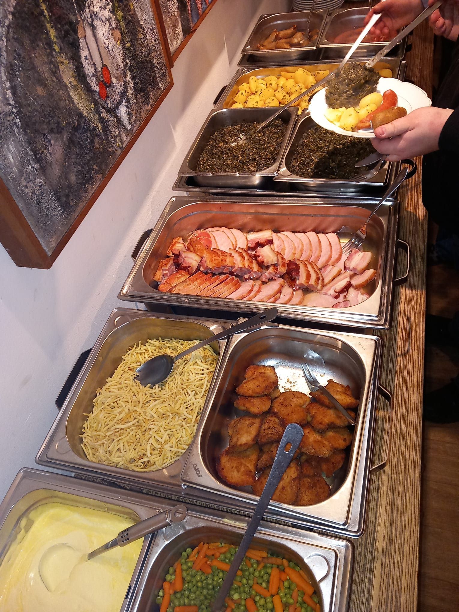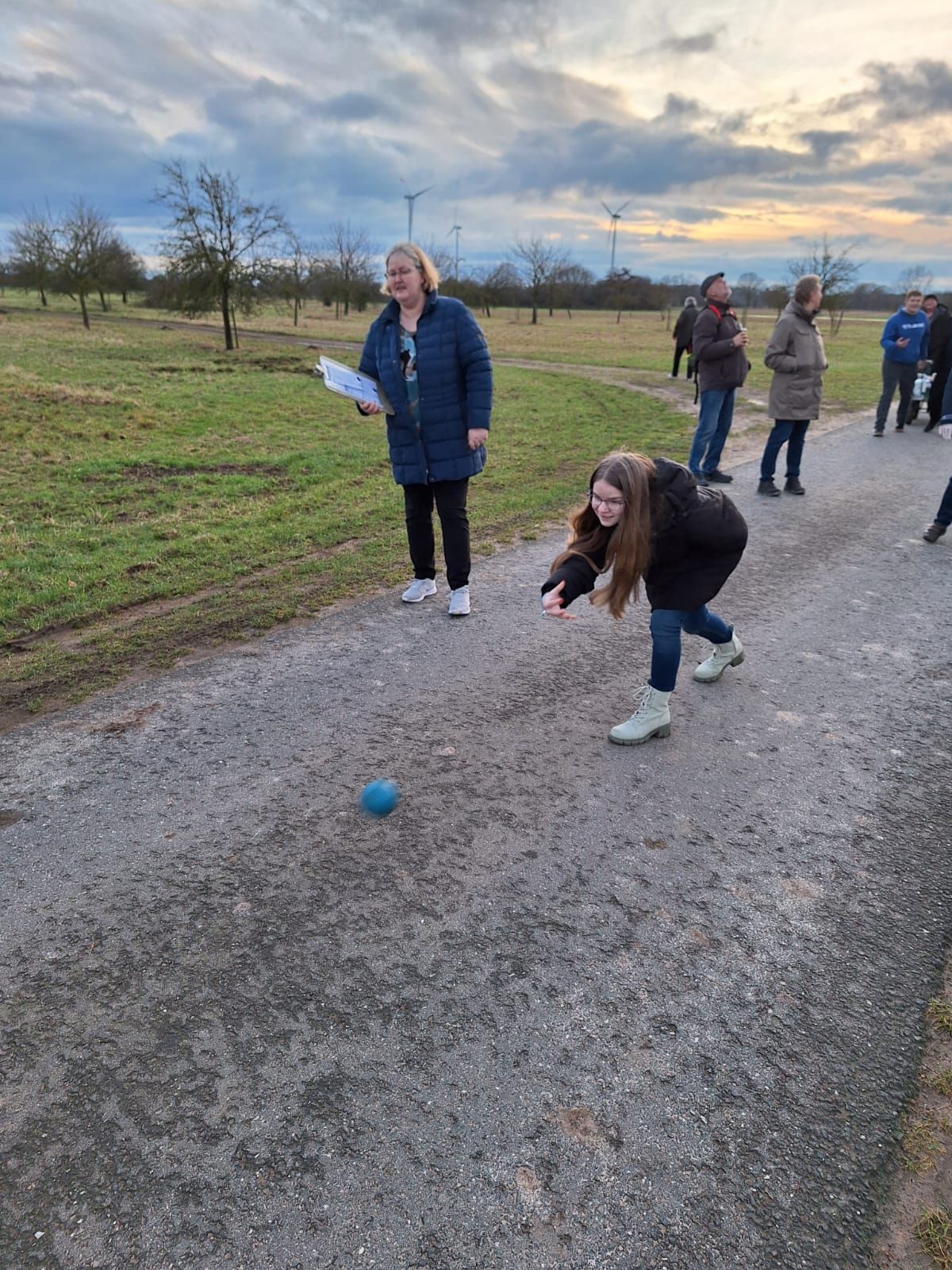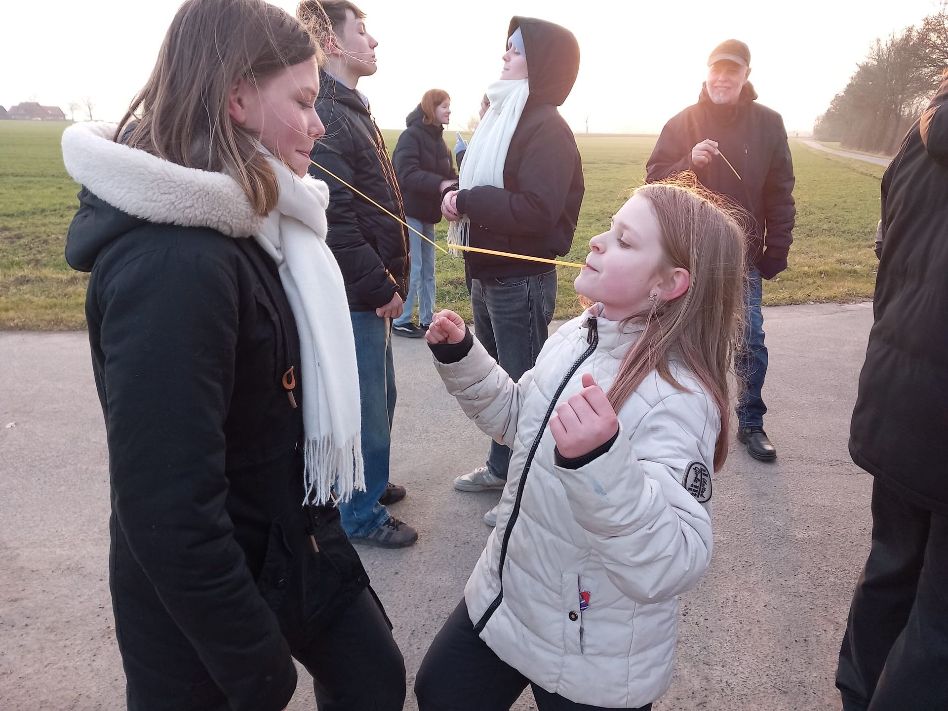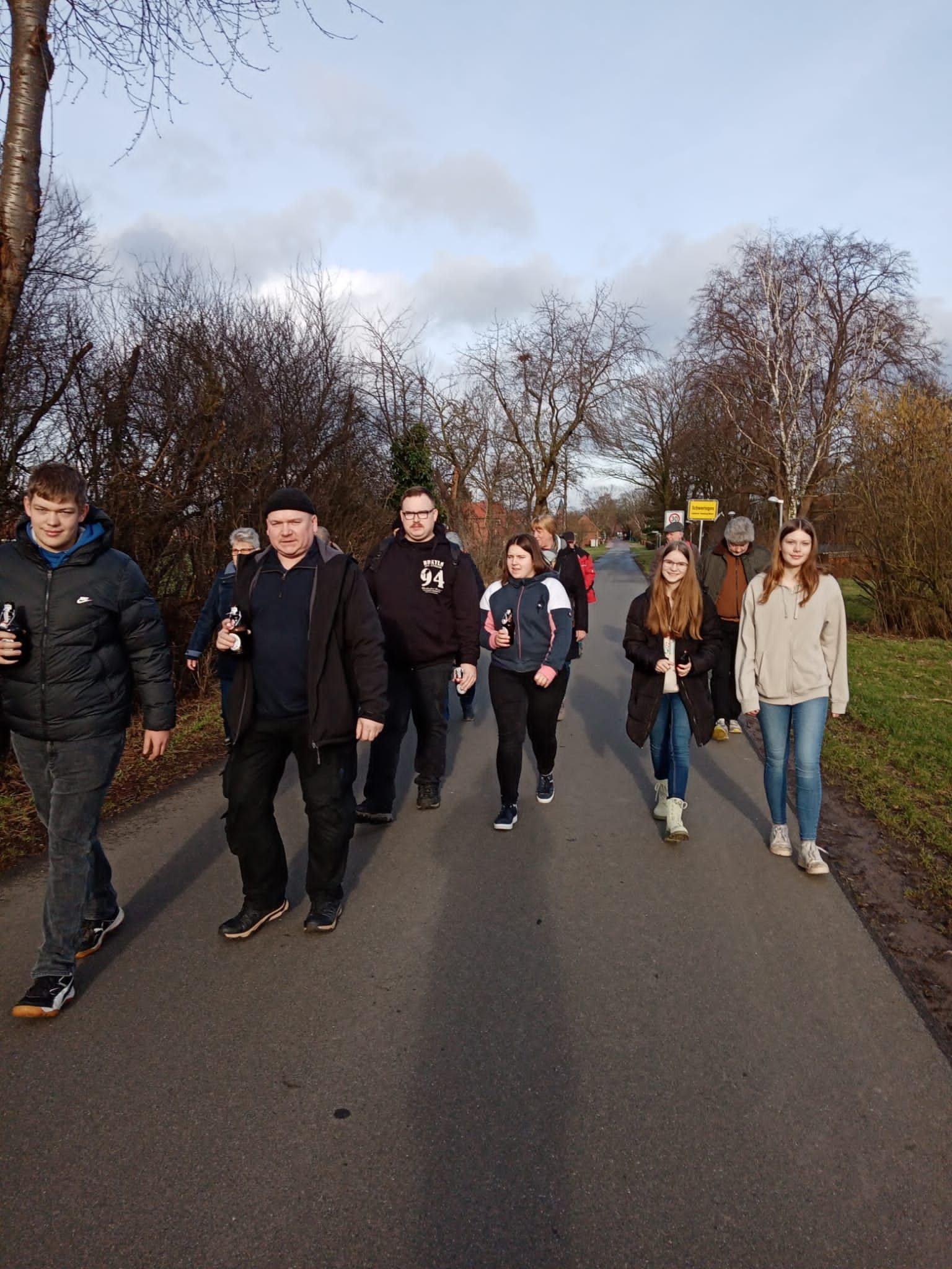 Beim Ziel am DGH verdoppelte sich die Teilnehmerzahl nochmal, sodass in großer, gemütlicher Runde gegessen wurde. Zur Wahl standen (natürlich) Grünkohl oder ein Schnitzelgericht, beides wurde gut angenommen. Zur Kohlkönigin wurde Melanie Prinzhorn gekürt und die Kinder bzw. Jugendlichen wählten ein "Schnitzelkid" aus: Johanna von der Behrens.