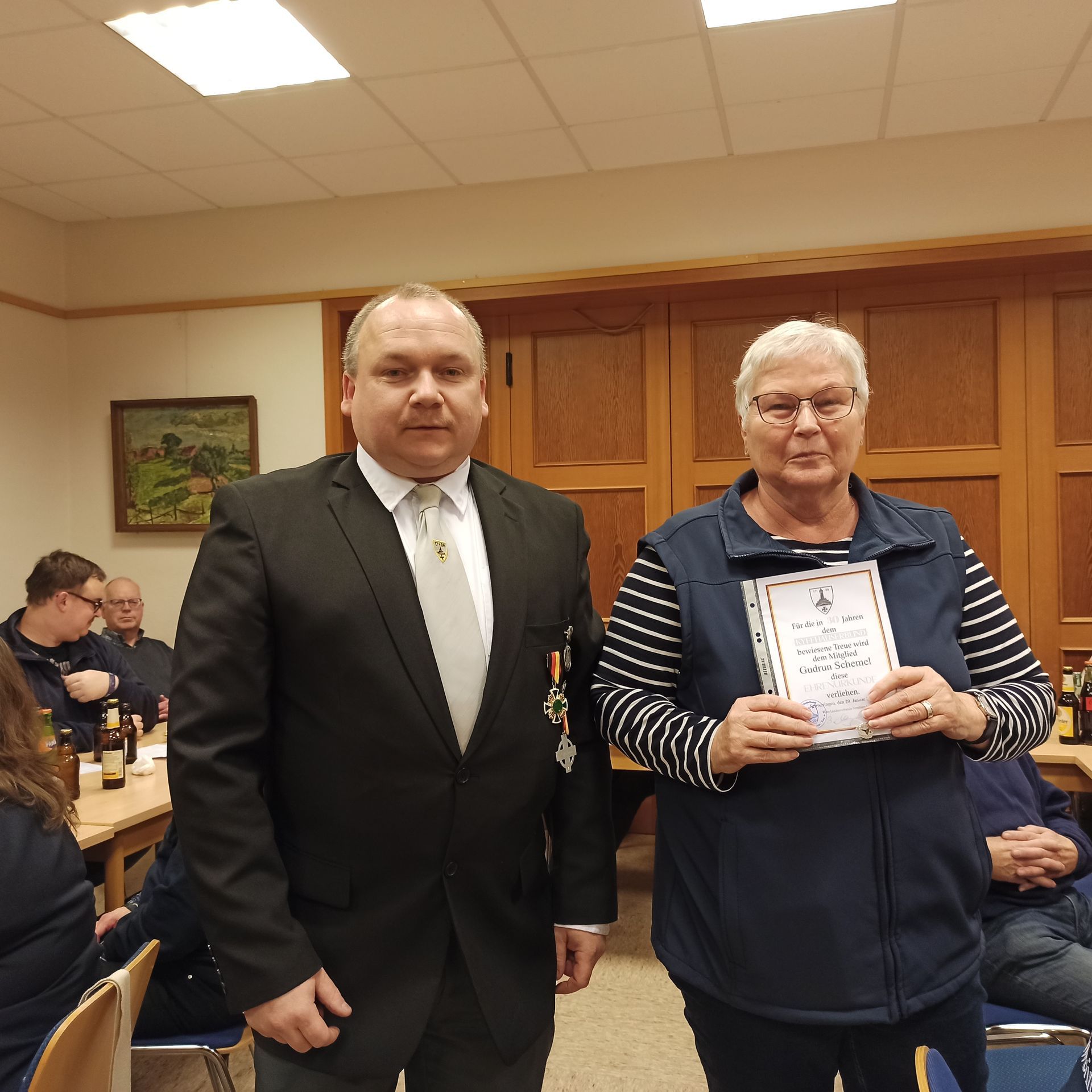 Neben den Neuwahlen des Vorstandes standen auch einige Ehrungen auf dem Programm. Für zehnjährige Mitgliedschaft wurde Lisa Meyer geehrt, auf zwanzig Jahre können Marco Brümmer und Marius Müller zurückblicken. Seit 25 Jahren dabei sind Jochen Noltemeier und Heinrich Rotmann. Bereits eine dreißigjährige Kameradschaft weisen Heike Meyer sowie Wilfried Schemel auf. Rekordhalter mit 50 Jahren sind jedoch Christa Lüdemann, Ursel Bultmann, Rita Schemel sowie Günter Gilster. Wir danken ihnen allen für ihre Treue gegenüber dem Verein.