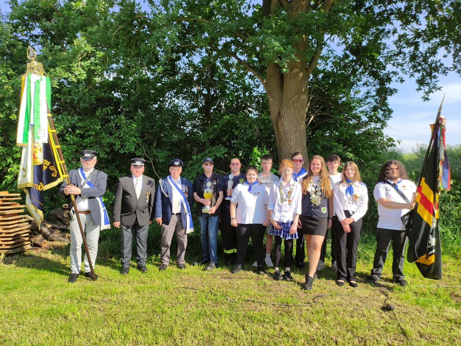 Gegen 14.00 Uhr folgte dann der obligatorische Festumzug zu den Königen unter der Begleitung des Spielmannszuges Haßbergen. Die Sonne meinte es gut an diesem Tag und so waren alle froh darüber, dass bei den jeweiligen Königshäusern reichlich Kaltgetränke und Eis serviert wurden.
