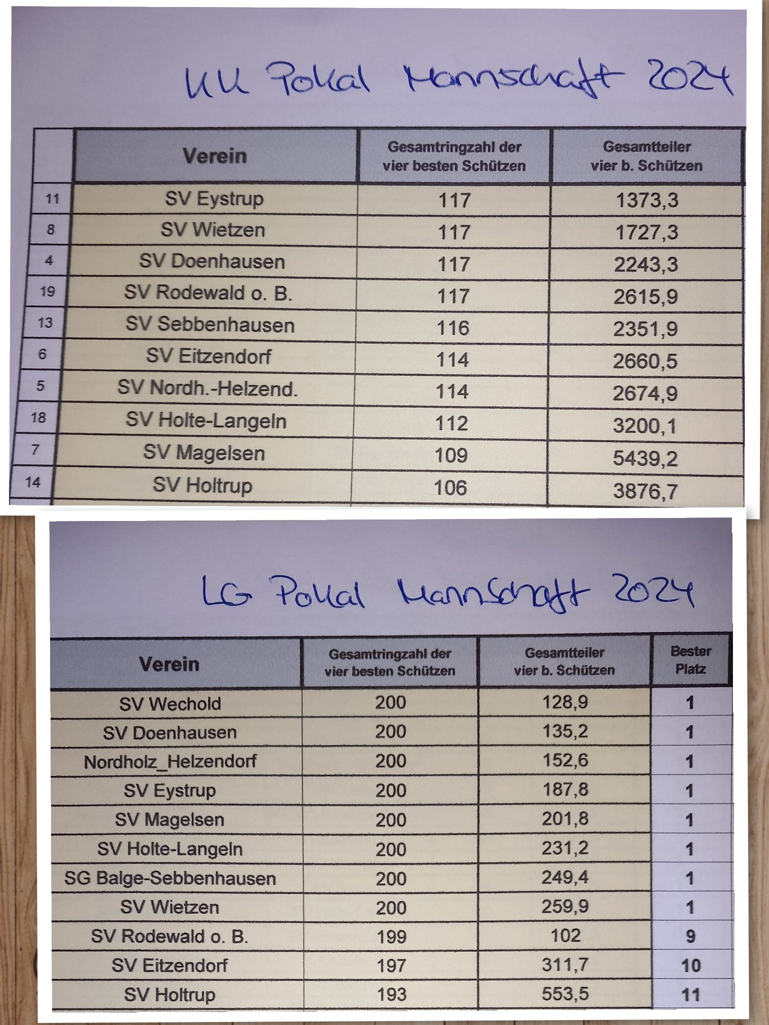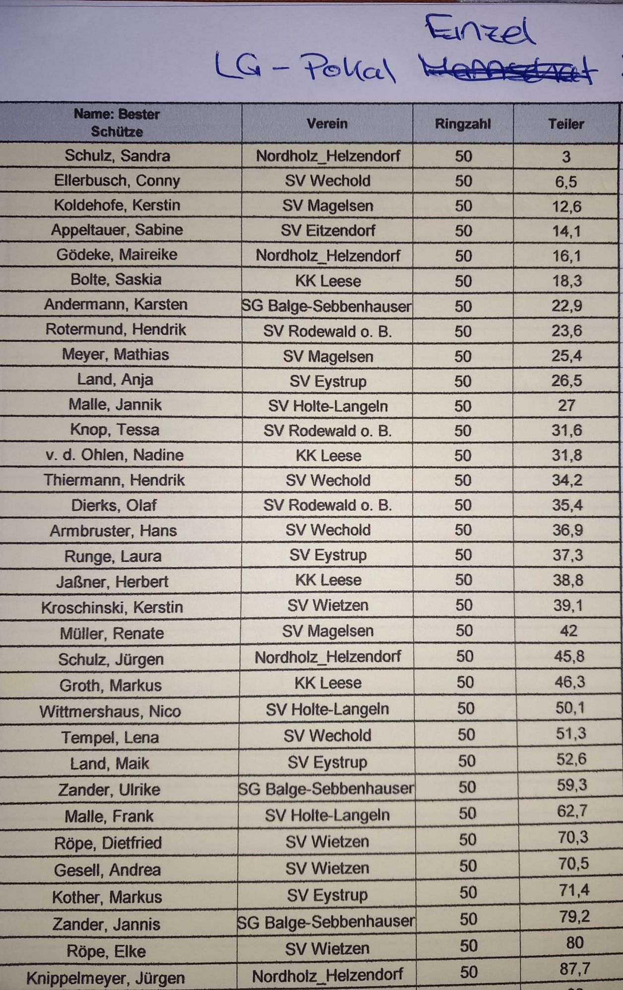 Aus den Reihen des Kreisverbandes war Kreisschießwart Frank Grunwald vor Ort, er verkündete folgende Ehrungen und Ergebnisse: Beim Wanderpokalschießen auf Kreisebene erreichten unsere Damen- wie Herrenmannschaft den ersten Platz und auch der Verbandspokal für gemischte Mannschaften ging nach Schweringen. In den Einzelwertungen waren Melanie Michaelis, Dörthe Andermann, Dieter Andermann, Holger Preikschat und Moritz Andermann besonders erfolgreich.