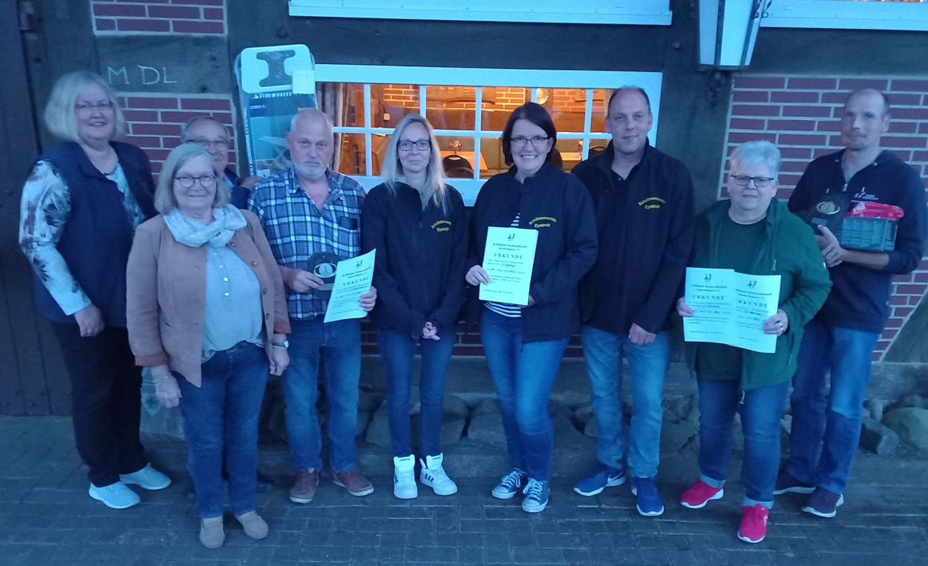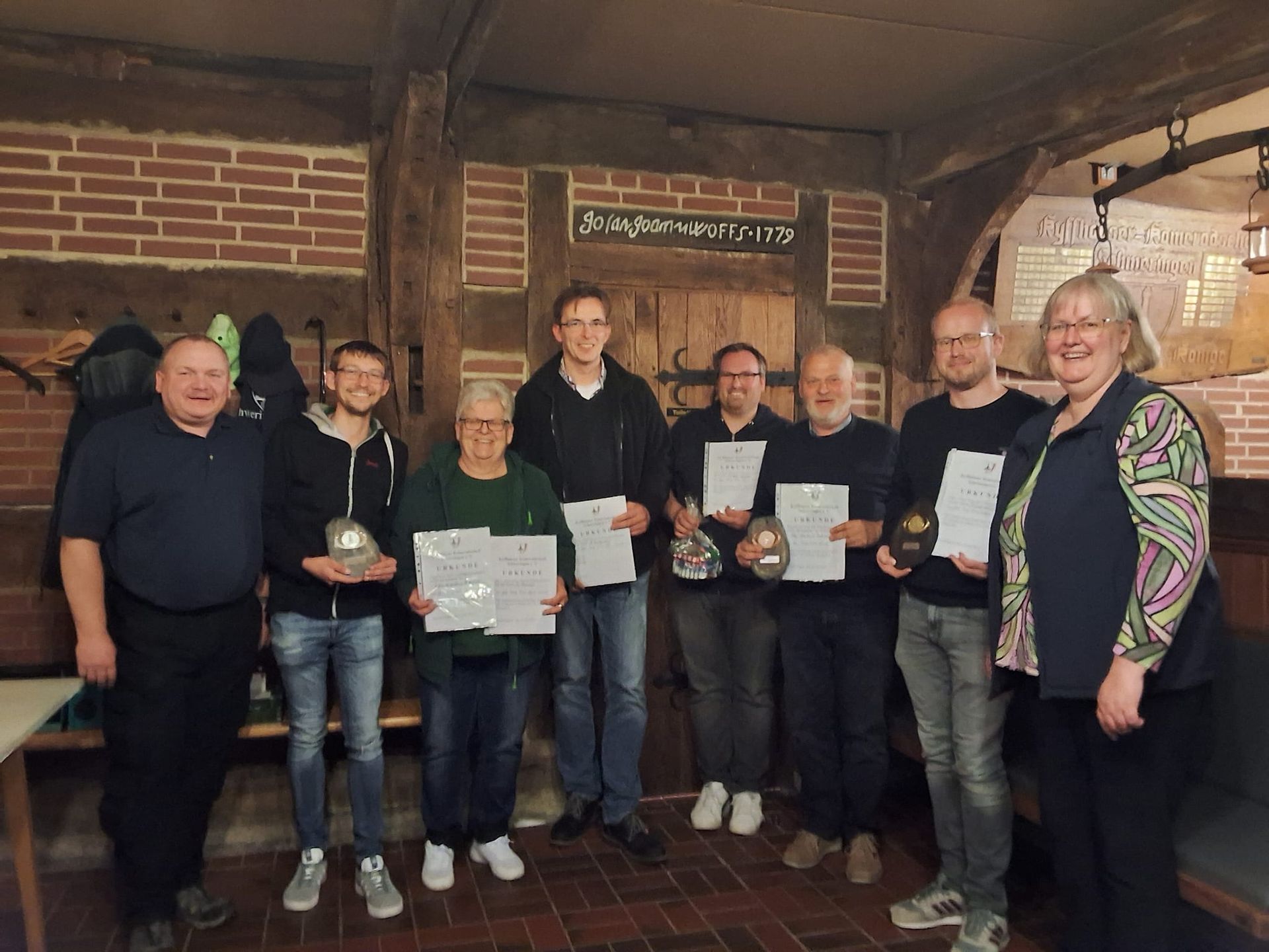 Ein etwas längerer Tagesordnungspunkt war die Ehrung langjähriger Mitglieder. Seit 30 Jahren der KK zugehörig sind: Sandra v.d. Behrens und Jens Klußmeyer. Für 25jährige Mitgliedschaft wurden geehrt: Rolf Müller, Ralf Meyer und Werner Bruns. 20 Jahre dabei sind Tim Nörmann, Jens Kessler, Dennis Bräuer, Harm Böckmann, Andre Siemering und Günter Erdmann. Schlussendlich wurden für die zehnjährige Mitgliedschaft ausgezeichnet: Kevin v.d.Behrens, Luisa Immoor, Uwe Vierus, Justin Müller, Patrick Müller sowie Petra und Holger Preikschat.