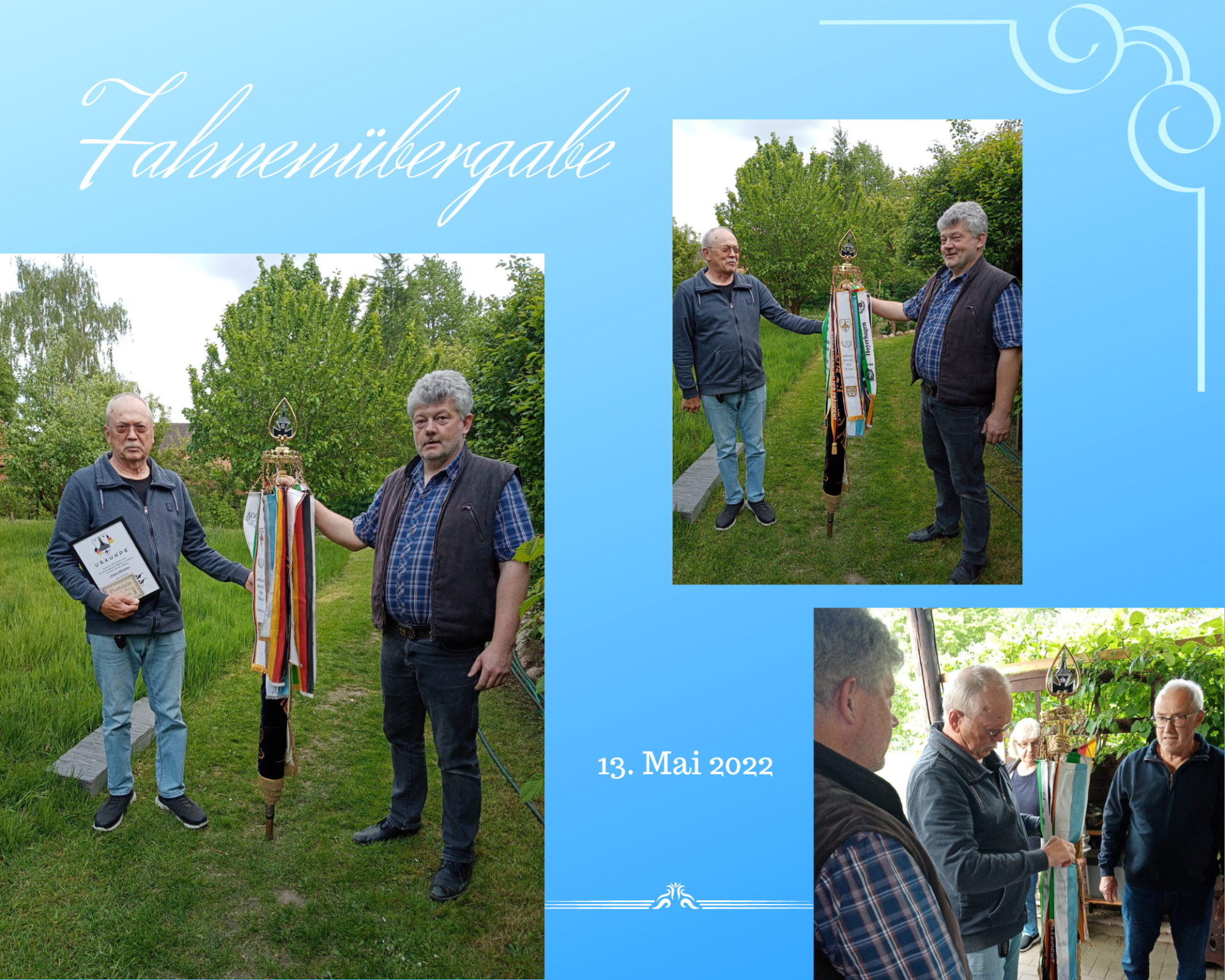 Wie schon berichtet, hat Jürgen Nörmann auf eigenen Wunsch das Amt des Fahnenträgers abgegeben. Am 13.Mai 2022 überreichte er die Fahne feierlich seinem Nachfolger Jens Klußmeyer. Wir bedanken uns bei Jürgen und wünschen Jens alles Gute für seinen neuen Posten.