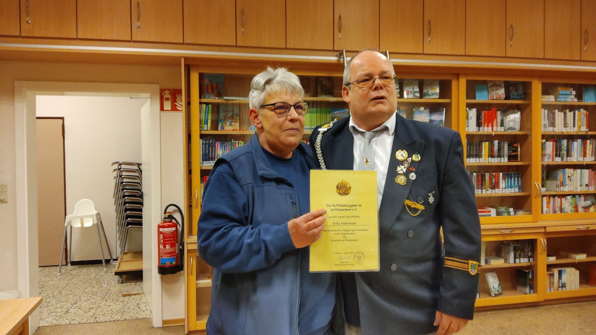 Des Weiteren wurde Erika Andermann die Ehrenlilie im Eichenkranz durch den stellvertretenden Landesjugendwart verliehen. Weiterhin überreichte Bernd Meyer stellvertretend für den Landesverband an Mario Michaelis das Kyffhäuser Verdienstkreuz zweiter Klasse. Die Schweringer Ehrennadel bekamen Bernd Meyer und Ingrid Lübke überreicht.